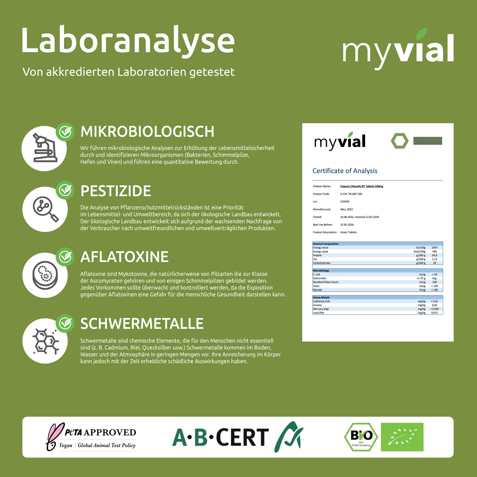 Laborgeprüft auf Reinheit und Rückstände